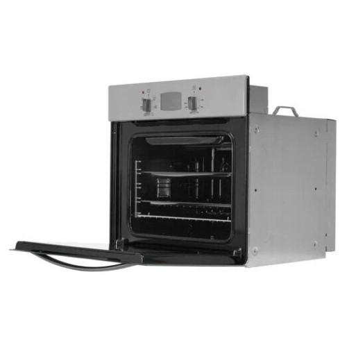 Электрический духовой шкаф. Классический дизайн современного образца, управление осуществляется двумя поворотными ручками: выбор режима работы и температуры нагрева. В середине панели управления установлен сенсорный таймер, есть часы и звуковой сигнал окончания работы программы. Помимо классического нагрева с автоматическим поддержанием заданной температуры, в комплектации присутствует электрогриль и вертел. Есть конвекция, равномерно распределяющая жар внутри шкафа. Запросто приготовить курицу-гриль, подрумянить выпечку, целиком запечь кусок мяса - духовой шкаф позволяет создавать кулинарные шедевры легко и просто. Продуман и контроль за готовностью блюда, внутреннее освещение - двухточечное, через двойное стекло прекрасно все видно и без открытия дверцы. Уход за прибором не доставляет проблем, для удобного доступа направляющие для противней и дверца - выполнены съемными. Размеры монтажного проема - 56x55x58 см (ШхГхВ), сетевой шнур и вилка в наличии. Ключевые преимущества: - Таймер сенсорный; - Усиленный гриль с конвекцией; - Вертел с электроприводом; - Подсветка духовки двойная; - Съемные проволочные направляющие духовки.