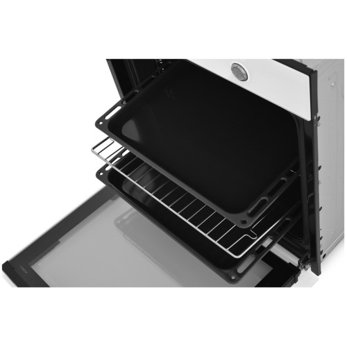 Стильный духовой шкаф Jacky's JO EW7518 станет настоящим украшением вашей кухни! Великолепная модель, разработанная английскими инженерами и дизайнерами, отличается большим объемом внутренней камеры - 78 литров и оснащена 8 режимами работы, среди которых имеется гриль и конвекция. В комплектацию входят 2 противня (стандартный, жаровочный лист) и хромированная решетка. К основным преимуществам духового шкафа можно отнести: Увеличенный объем внутреннего пространства до 78 л. помогает готовить нескольких блюд одновременно, что особенно актуально для больших семей и любителей кулинарных изысков. Съемные стекла, которые можно снять без особых усилий, благодаря продуманной конструкции крепления стёкол. Данная особенность помогает поддерживать духовой шкаф в чистом состоянии, уход за ним становится комфортным и приятным. Специальное стекло E-Low и дополнительные 3 стекла дверцы оказывают теплоизоляционное воздействие, что влияет на качество и быстрое приготовление блюд. Внешнее стекло всегда остаётся прохладным или немного тёплым, что обеспечивает защиту при случайном прикосновении к дверце. Благодаря задней каталитической пластине, очищение внутренней поверхности шкафа, происходит без затруднений. Во время приготовления пищи, расщепляется жир до углерода и воды. Для очищения духовки достаточно просто протереть её влажной тряпкой. Утапливаемые ручки с иллюминацией придают изысканность стилю и дополняют интерьер кухни. Для удобства использования программы приготовления нанесены на ручку, что позволяет всегда видеть выбранный параметр и температуру на удобном уровне. В некоторых моделях ручки подсвечиваются мягким ледяным свечением, что придаёт дополнительную изысканность всей панели управления. Покрытие Anti-Finger препятствует появлению следов от отпечатков пальцев на поверхности панели управления, что значительно влияет на аккуратный внешний вид панели, поскольку панель всегда остаётся чистой. Режимы работы духового шкафа: Режим размораживания Режим статического приготовления Режим гриля Режим быстрого приготовления на гриле Режим двойного гриля и вентилятора Режим вентилятора Режим нижнего нагрева и вентилятора Лампочка духового шкафа