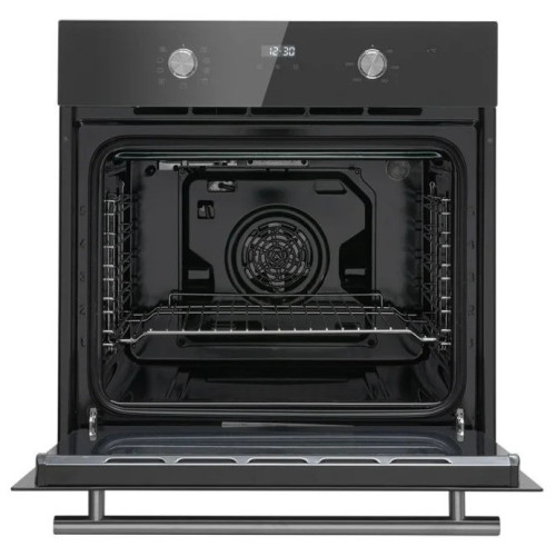 Внутренний объём встраиваемого электрического духового шкафа Midea составляет 70 литров – этого хватит, чтобы приготовить несколько блюд одновременно или разместить большую утятницу или казан. В комплект входят металлическая решётка и глубокий противень. Пользователь может выбрать один из нескольких предустановленных режимов работы, среди которых имеется программа конвекции. Она предусматривает движение горячего воздуха внутри камеры, за счёт чего блюдо прогревается со всех сторон: снизу оно не подгорит, а сверху покроется румяной и хрустящей корочкой.