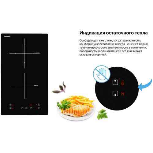 | Безопасность | защитное отключение конфорок, индикатор остаточного тепла, кнопка блокировки панели |