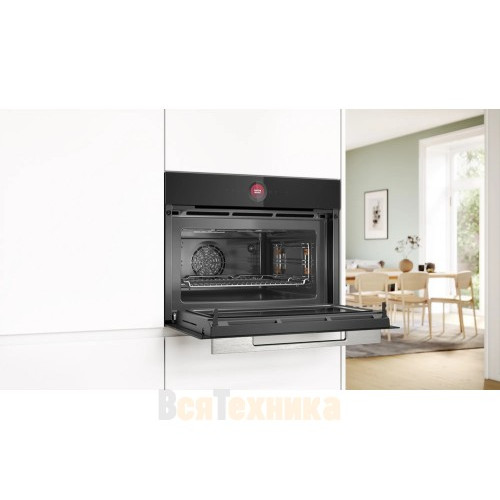 Духовой шкаф Bosch CMG7241B1 - это современное решение для любителей кулинарных экспериментов. Управление духовкой осуществляется с помощью сенсорных кнопок и 2.5-дюймового цветного TFT дисплея, что делает процесс приготовления еще более удобным и интуитивно понятным.