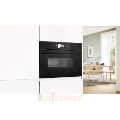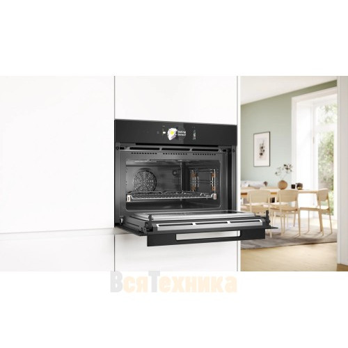Духовой шкаф Bosch CMG978NB1 оснащена программой Assist, она отслеживает приготовление блюда и сама отключает устройство. Система Home connect позволяет управлять удаленно с помощью голосового управления.
