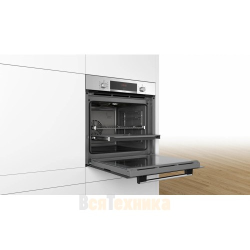 Духовой шкаф Bosch HBA334YS0 представлен в цвете нержавеющая сталь, имеется дисплей с сенсорным управлением и отображением времени. EcoClean Direct - это специальное покрытие из керамических микрочастиц на задней стенке духовки расщепляет капли жира после приготовления. Присутствуют 7 режимов нагрева.