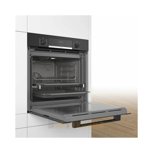 Электрический духовой шкаф Bosch HBA3540B0 обладает прочным и стильным черным корпусом, который идеально впишется в любой интерьер кухни. Фурнитура устройства также выполнена в черном цвете, что придает ему современный и элегантный вид. Управление шкафом осуществляется с помощью механических сенсорных поворотных элементов, что делает его использование максимально удобным и простым. На передней панели устройства расположен LED-дисплей с электронными часами и таймером, который поможет вам точно контролировать время приготовления пищи. Одной из особенностей этого духового шкафа является его внутренний объем в 71 литр, что позволяет готовить большое количество продуктов одновременно. Он оснащен семью режимами нагрева и способен работать в диапазоне температур от 50 до 275 градусов Цельсия. Благодаря этому, вы сможете выбрать оптимальный режим для приготовления любого блюда.