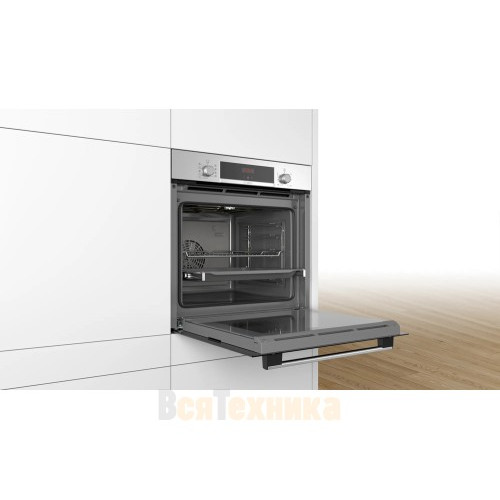 Духовой шкаф Bosch HBA534ES0 оснащен 7 режимами приготовления среди из которых гриль, он позволит приготовить курицу с хрустящей корочкой. А панель EcoClean облегчит уход за прибором. Устройство оснащено дисплеем на, котором отображается время работы.