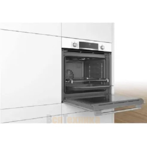 Электрический духовой шкаф Bosch HBA5360W0 имеет камеру объемом 71 л, что оптимально для одновременного приготовления нескольких противней выпечки и вторых блюд. Модель поддерживает семь режимов, среди которых есть «Разморозка» и «Гриль», а также виды конвекционного нагрева. Это оптимально для расширения семейного меню. Сенсорная панель удобна для управления устройством. Дисплей с интуитивно понятными обозначениями и утапливаемые переключатели упрощают настраивание желаемых параметров работы.
