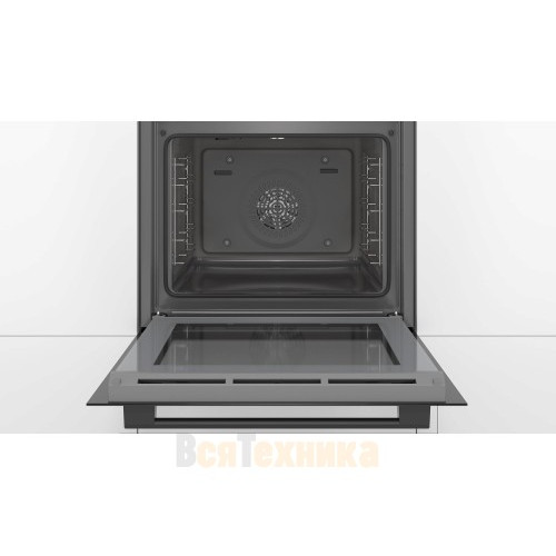 Электрический духовой шкаф Bosch HBA553BA0 объемом 71 л способен нагреваться до температуры 275°С и работать в режиме конвекции. Модель оборудована дверцей с двухслойным термоустойчивым стеклом и доводчиком закрытия SoftClose. Пиролитическая очистка обеспечивает полное сжигание загрязнений и комфортное удаление частиц пепла. Для этого можно использовать губку или салфетку из мягкой ткани.