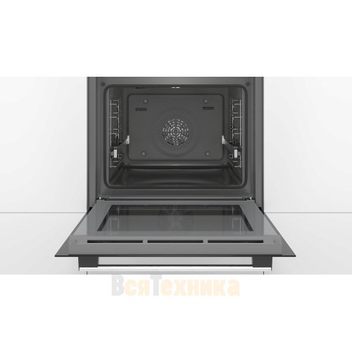 Электрический духовой шкаф Bosch HBA5560S0 работает в 7 режимах и нагревается до 275°C. Функция конвекции равномерно распределяет горячий воздух, что позволяет приготовить несколько блюд на разных противнях одновременно. Специальное покрытие EcoClean расщепляет жир во время выпечки, что делает простым уход за изделием.