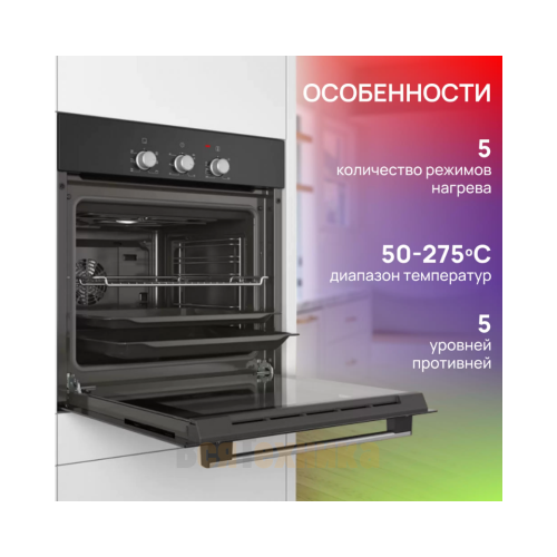 - Долговечность и прочность: Камера духовки выполнена из высококачественных материалов, устойчивых к высоким температурам и механическим воздействиям. Два слоя закаленного стекла в дверце обеспечивают безопасность и эффективную теплоизоляцию.