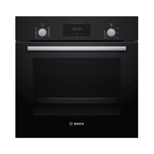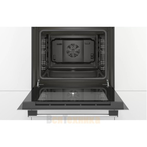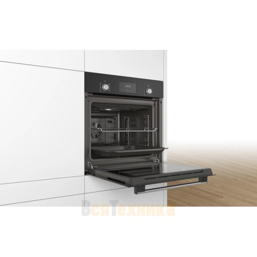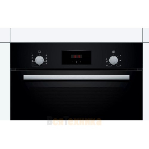 Духовой шкаф Bosch HBF114EB1R выполнен в стильном дизайне и оснащен электронной панелью управления с цифровым дисплеем и утапливаемыми поворотными переключателями