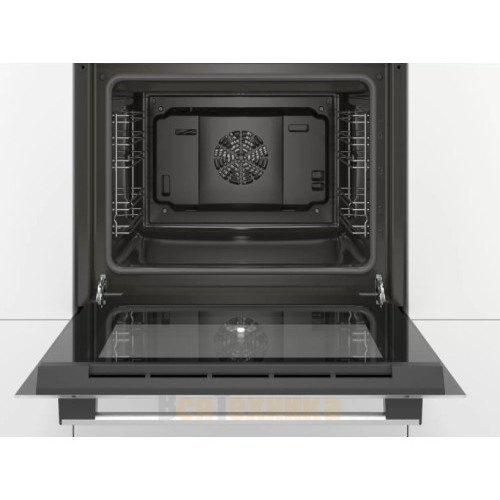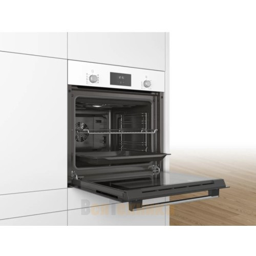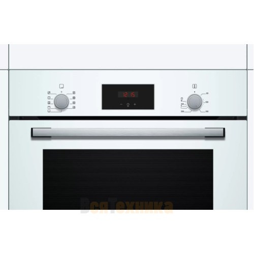 Bosch HBF114EW1R — это электрический духовой шкаф, выполненный в белом цвете. Такое цветовое решение позволяет устройству удачно вписываться в современный кухонный интерьер — например, в стилях модерн или хай-тек. Внутренний объем составляет 66 литров, благодаря чему есть возможность запекать большие блюда. Управление осуществляется посредством нажатия кнопок, поворота переключателей, а также использования сенсорных кнопок. Благодаря многофункциональным часам Easy Clock можно с легкостью отслеживать время до окончания работы одной из программ. LED-дисплей имеет высокое качество изображения и устойчив к высоким температурам.