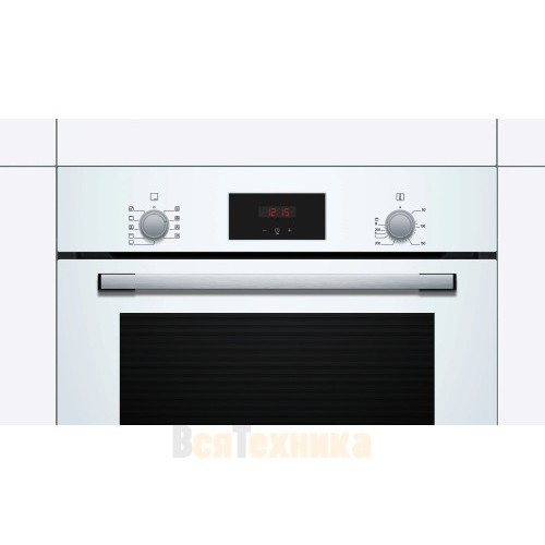 Духовой шкаф Bosch HBF134EV0R выполнен в белом цвете и оснащен функцией «Быстрый разогрев», которая нагревает камеру до нужной температуры перед началом выбранного режима.
