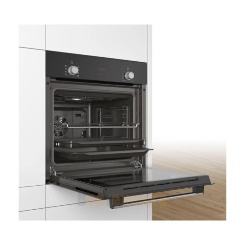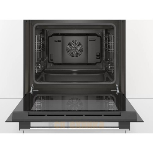 Духовой шкаф Bosch HBF512BA1R оснащен конвекцией, при которой горячий воздух равномерно распределяется внутри камеры, что позволяет готовить на нескольких уровнях одновременно. Поворотные переключатели обладают плавным ходом и не перегреваются во время работы прибора. Предусмотрена блокировка от детей или от случайного сбоя программы во время работы прибора. Модель комплектуется двумя противнями и комбинированной решёткой.