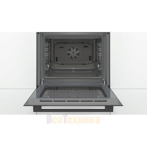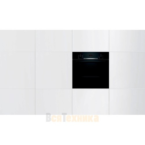 Духовой шкаф Bosch HBF534EB0R отлично сочетается с большинством варочных панелей, вытяжек и прочей кухонной техникой. На черной поверхности меньше заметна грязь, пыль, отпечатки пальцев и небольшие брызги