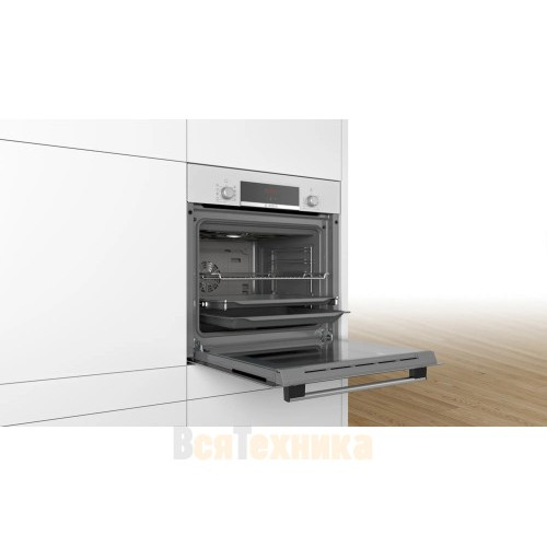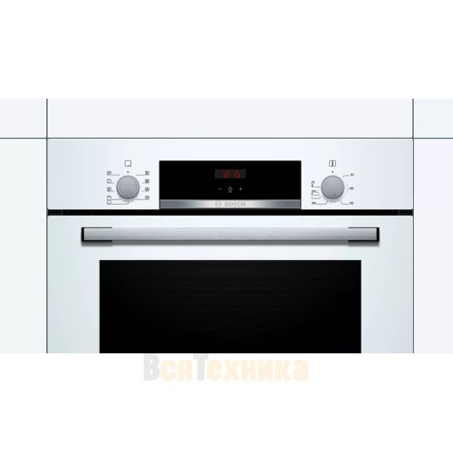 Духовой шкаф Bosch HBF534EW0Q представлен в белом цвете, имеет 8 режимов нагрева. Оснащен TFT-дисплеем с сенсорными кнопками управления. Система охлаждения прибора убережет мебель от нагрева. Функция «Блокировка от детей» поможет избежать случайного нажатия.