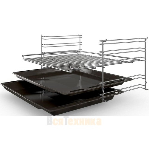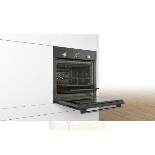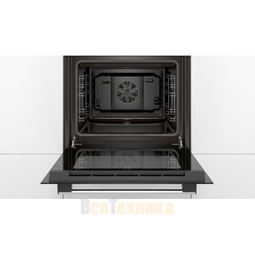 Духовой шкаф Bosch HBFS10BB0R — встраиваемая модель с функцией гидролитической очистки. В комплект входят: решетка, универсальный протвень и эмалированный противень для выпечки