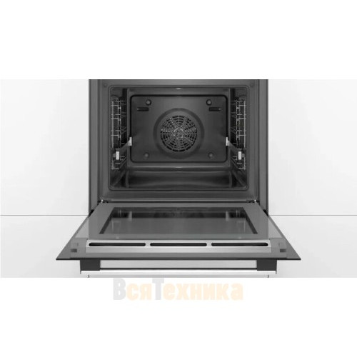 Духовой шкаф Bosch HBG 5780S6 оснащен режимом 3D-горячий воздух, который дает возможность выпекать на трех уровнях одновременно. Панели EcoClean Direct облегчают очистку, капли жира попадают на специальное покрытие на задней стенке и под воздействием высоких температур разлагаются на воду и углекислый газ.