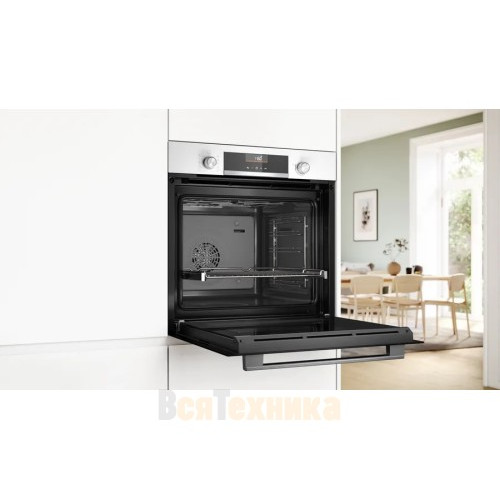 Духовой шкаф Bosch HBG536EW3В оснащен объёмом рабочей камеры 71 литр, что предоставляет достаточно пространства для запекания нескольких блюд одновременно и удобного размещения противней и решёток. Управление реализовано в электронном формате при помощи сенсорных утапливаемых поворотных элементов, которые сочетают в себе тактильность и аккуратность оформления панели.