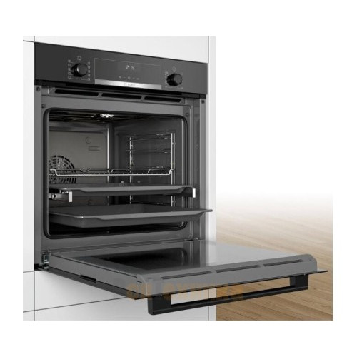 Духовой шкаф Bosch HBG5370B0 заявлен в классическом черном цвете. У данной модели есть утапливаемые переключатели, которые позволяют легко и быстро управлять прибором. Удобная каталитическая очистка помогает справляться с загрязнениями и продолжать эксплуатировать духовой шкаф с комфортом. Объем данной духовки составляет 71 л, а это значит, что можно приготовить оптимальное количество порций. У устройства 10 автоматических программ, что облегчит готовку различных блюд.