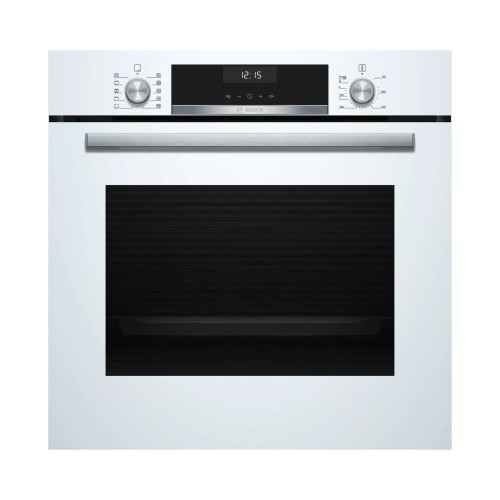 Встраиваемый духовой шкаф BOSCH HBG537NW0R — это электрическая независимая модель из линейки Serie | 6. Ее внутренний объем составляет 71 литр, благодаря чему в ней можно запекать сразу несколько блюд, либо одно большое. Она выполнена в белом цветовом решении, благодаря чему хорошо вписывается в различные виды современного кухонного интерьера. Управление осуществляется с помощью сенсорных кнопок, а также утапливаемых и поворотных переключателей. Благодаря многофункциональным часам Easy Clock можно с легкостью отслеживать время до окончания работы одной из программ.