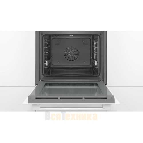 Духовой шкаф ВOSCH HBG537NW0R оснащен кольцевым нагревательным элементом и вентилятором для распределения горячего воздуха по всей камере духовки.