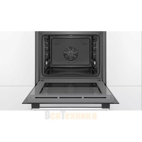 Духовой шкаф Bosch HBG538ES6R оснащен очисткой EcoClean Direct, на задней стенки камеры расположена каталитическая панель, на которой жировые загрязнения расщепляются на углекислый газ и воду под воздействием высоких температур.