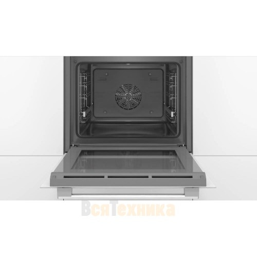 Духовой шкаф Bosch HBG538EW6R оснащен режимом 3D-горячий воздух, который дает возможность выпекать на трех уровнях одновременно. Панели EcoClean Direct облегчают очистку, капли жира попадают на специальное покрытие на задней стенке и под воздействием высоких температур разлагаются на воду и углекислый газ.