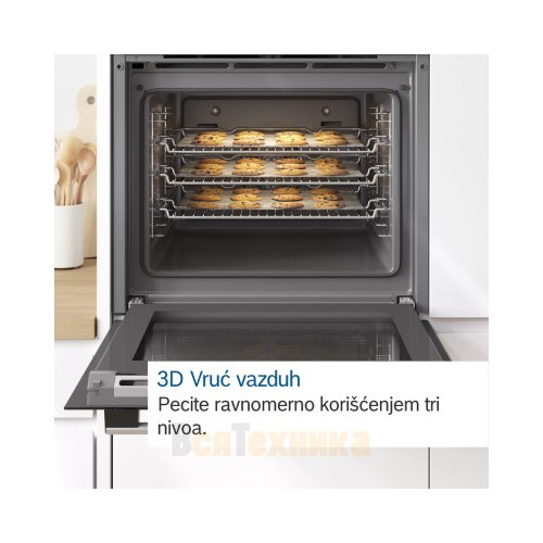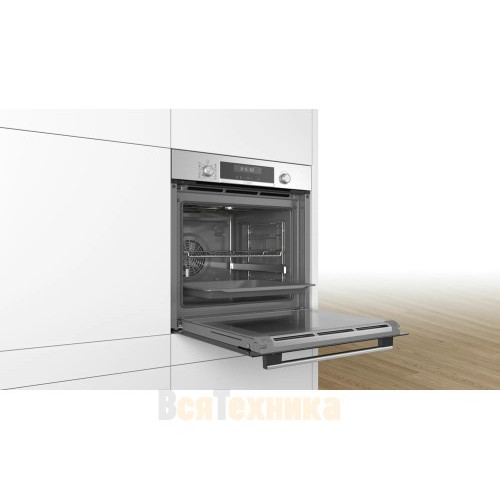 Духовой шкаф Bosch HBG5780S0 оснащен AutoPilot30 автоматическими программами, вы можете выбрать уже готовый рецепт, остается только ввести вес блюда. 10 режимов нагрева среди них есть, программа для пиццы. Управление осуществляется с помощью утапливаемых поворотных переключателей и сенсорного дисплея.