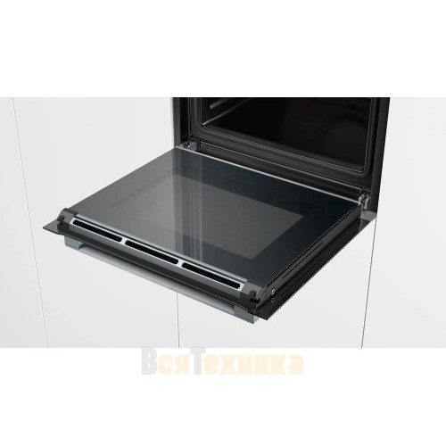 Духовой шкаф Bosch HBG632TS1 оснащен TFT-дисплеем на нем отображаются все режимы приготовления. Имеются 3х уровневые телескопические направляющие, для безопасного и удобного извлечения противней. Технология 4D горячий воздух обеспечивает равномерное распределяет нагрев на всех уровнях.