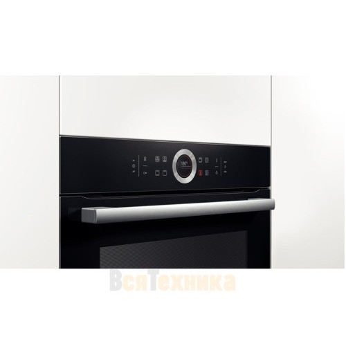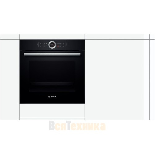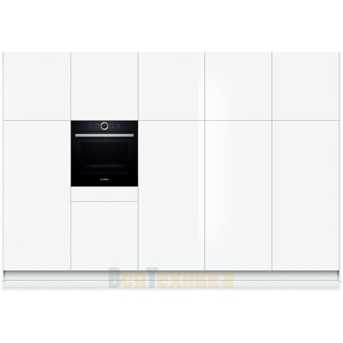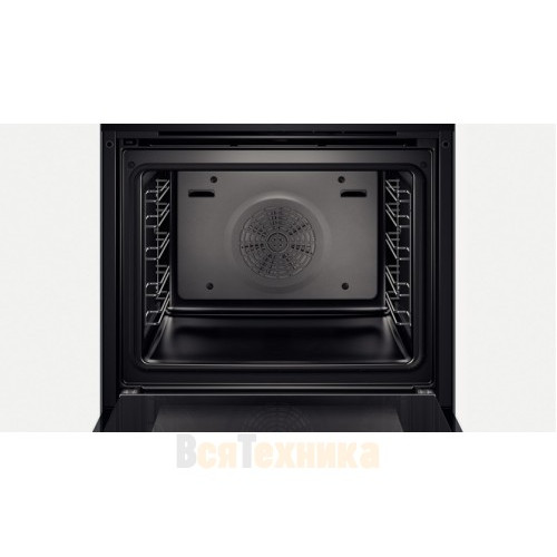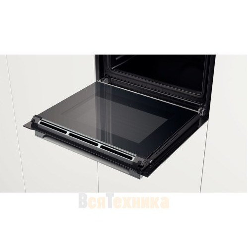 Духовой шкаф Bosch HBG633BB1 оснащен каталитической панелью на задней стенки камеры, жировые загрязнения под воздействием высоких температур распадаются на углекислый газ и воду, это облегчит уход за устройством