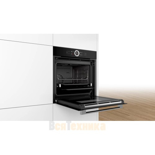 Духовой шкаф Bosch HBG655NB1 оснащен автоматическими программами AutoPilot 10. Система очистки EcoClean Direct — это специальный слой керамических микросфер, нанесенный на заднюю, верхнюю и боковую стенки камеры, он расщепляет брызги жира во время приготовления. 4D-Горячий воздух равномерно распределит тепло по всей рабочей камере, что позволит готовить на нескольких уровнях одновременно.