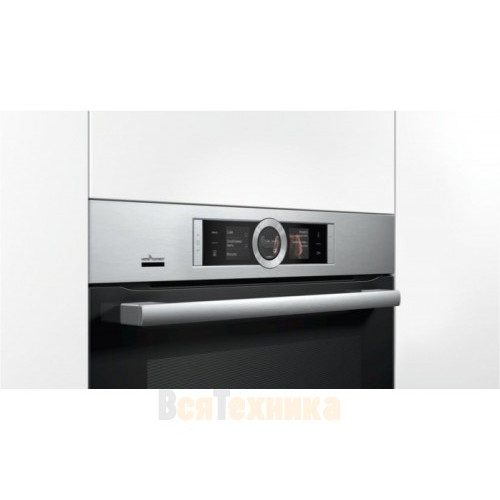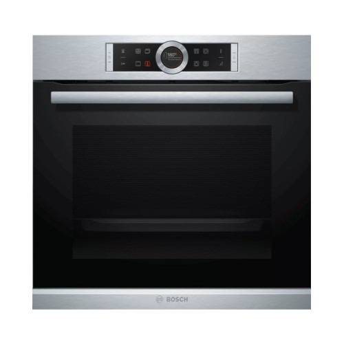 Духовой шкаф Bosch HBG656ES6 оснащен сенсорным дисплеем и переключателем ControlRing, который позволяют выбирать из 13 режимов нагрева. Диапазон температур 30-300°C позволяет готовить разнообразные блюда — от жареного мяса до йогуртов, от тортов до запеканок. Вентилятор охлаждает фронтальную поверхность и она не нагревается выше 40°C.