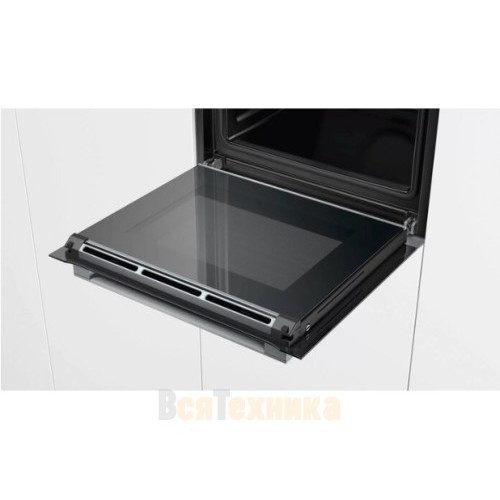 Функция 4D Горячий воздух дает возможность готовить разные продукты на нескольких уровнях одновременно, запахи при этом не смешиваются. На металлические направляющие может быть установлена телескопическая рельсовая система для удобства эксплуатации.