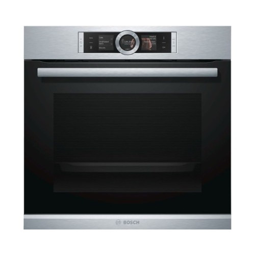 Духовой шкаф Bosch HBG6764S1 — это электрическая независимая модель из линейки Serie | 8. Ее внутренний объем составляет 71 литр, благодаря чему есть возможность запекать большие блюда. Она оформлена в цвете «нержавеющая сталь», благодаря чему отлично впишется в любой современный кухонный интерьер — например, в стиле хай-тек. Управление осуществляется посредством использования сенсорных кнопок и Control Ring. Благодаря многофункциональным часам Easy Clock можно с легкостью отслеживать время до окончания работы одной из программ.