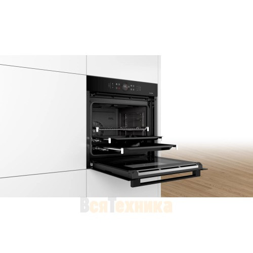 Духовой шкаф Bosch HBG855TC0 оснащен TFT дисплеем с сенсорным управлением он прост в управлении, все режимы у вас на виду. 4D горячий воздух обеспечивает равномерное распределение тепла на все уровнях приготовления. 3 уровня телескопических направляющих для удобного и безопасного извлечения противней.