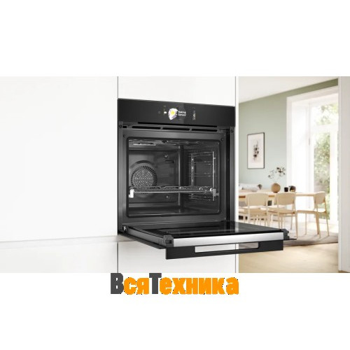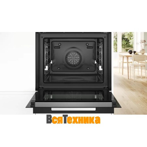Духовой шкаф Bosch HBG978NB1 - устройство премиум-класса. Матовый черный корпус и черная фурнитура придают минималистичный и современный характер, а 4-слойное остекление дверцы обеспечивает безопасную эксплуатацию: наружная поверхность не нагревается свыше 30 °C.