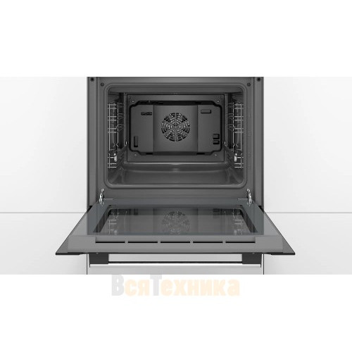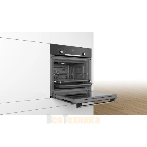Духовой шкаф ВOSCH HBJ514EB0R оснащен часами EasyClock и таймером окончания готовки. Амортизаторы дверцы позволяют плавно закрывать камеру, не создавая дискомфорта