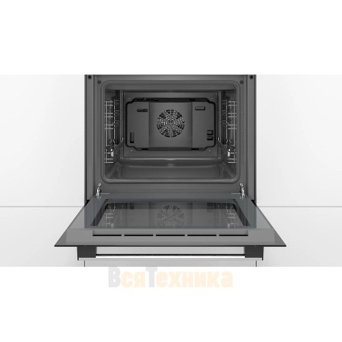 Духовой шкаф Bosch HBJ517FW0R — это электрическая независимая модель. Ее внутренний объем составляет 66 литров, благодаря чему есть возможность запекать большие блюда. Она оформлена в стильном белом цвете с фурнитурой из нержавеющей стали, благодаря чему отлично впишется в любой современный кухонный интерьер — например, в стиле хай-тек. Управление осуществляется посредством нажатия кнопок, поворота переключателей, а также использования сенсорных кнопок. Благодаря многофункциональным часам Easy Clock можно с легкостью отслеживать время до окончания работы одной из программ.