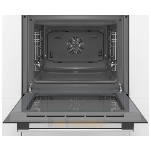 Духовой шкаф ВOSCH HBJ577EB0R оснащен кольцевым нагревательным элементом с вентилятором. Не стоит волноваться, если готовятся разные блюда: запахи не перемешаются
