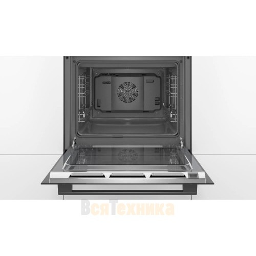 Духовой шкаф ВOSCH HBJ577EB0R оснащен кольцевым нагревательным элементом с вентилятором. Не стоит волноваться, если готовятся разные блюда: запахи не перемешаются