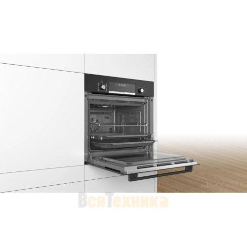 Встраиваемый духовой шкаф BOSCH HBJ577EB0R оборудован системой пиролитической очистки, которая превращает любое загрязнение в пыль. LCD дисплей позволяет следить за уровнем нагрева и настраивать режим, в котором будет приготовлено самое идеальное блюдо. Технология softClose обеспечивает плавное и бесшумное закрытие дверцы.