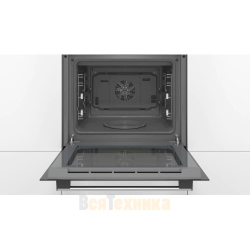 Духовой шкаф Bosch HIJ557YS0R — модель с функцией добавления пара при выпечке и очисткой EcoClean Direct. Пластины с покрытием, расщепляющим жир, расположены на боковых и задних стенках и на потолке
