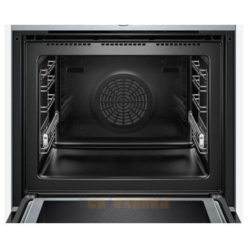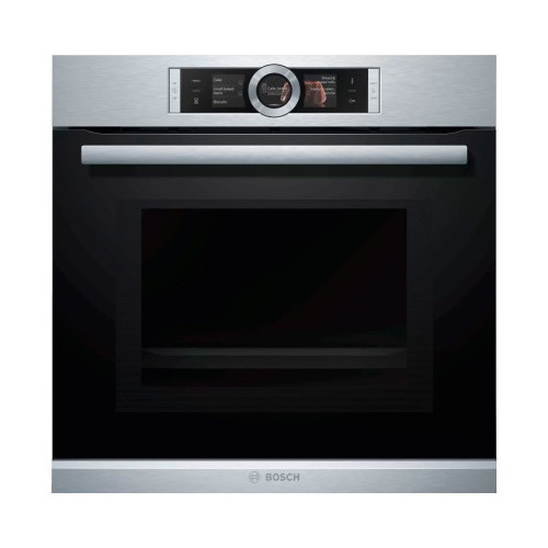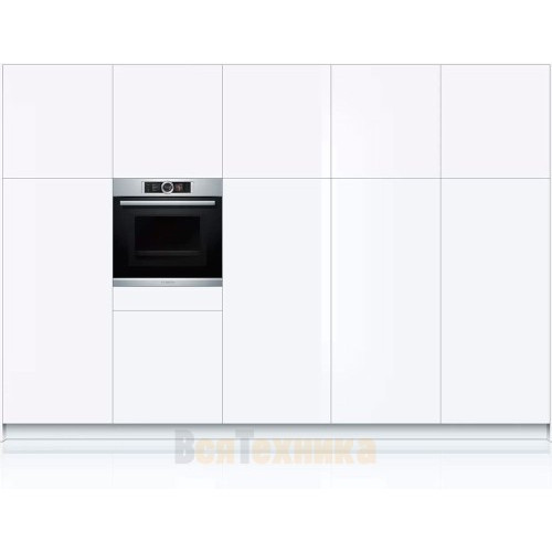 Духовой шкаф BOSH HMG6764B1 выполнен в чёрном цвете корпуса и фурнитуре из нержавеющей стали. Модель имеет 12 видов нагрева для разных вариантов готовки