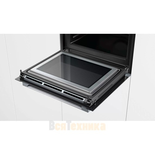 Духовой шкаф BOSCH HMG6764S1 объемом 67 литров выполнен в черном цвете с элементами из нержавеющей стали. В 12 режимов, помимо стандартного традиционного нагрева и гриля, входит также режим микроволн с 5 уровнями мощности. Благодаря пиролитической очистке уход за прибором станет еще легче: вам лишь нужно убрать тряпочкой пепел после того, как духовка остынет.