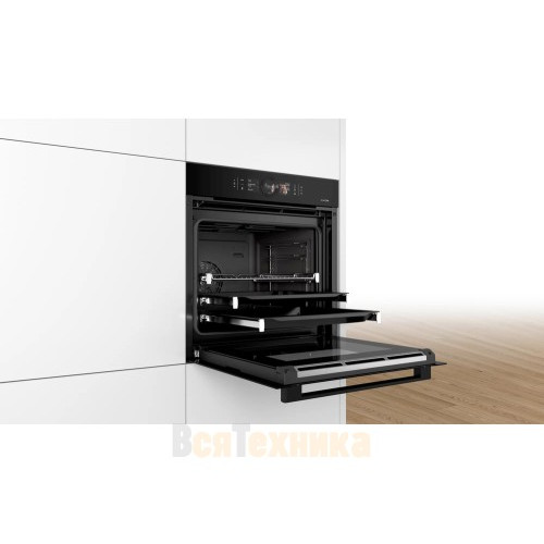Духовой шкаф Bosch HSG856XC7 оснащен функцией Assist, она сделает все за вас, просто выберите блюдо на панели управления и устройство само подберет тип нагрева, температуру и время приготовления. 4D горячий воздух обеспечивает быстрое и равномерное распределение тепла на всех уровнях приготовления. EcoClean Direct Plus — это специальное покрытие из мельчайших керамических шариков на стенках и потолке, во время приготовления происходит расщепление брызг жира.