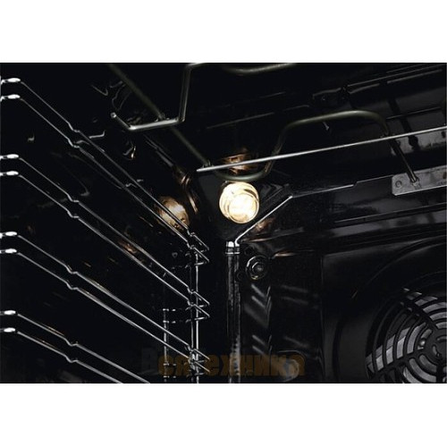 Трехслойное стекло дверцы эффективно сохраняет тепло внутри и обеспечивает безопасность, оставаясь прохладным снаружи. Мощная галогенная лампа ярко освещает всю камеру, позволяя контролировать процесс приготовления, не открывая дверцу и не нарушая температурный режим.