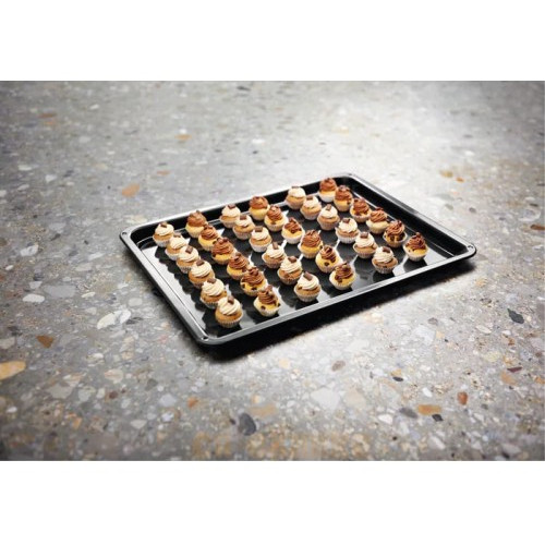 Модель выполнена в стильном черном цвете (Black Inox) и обладает лаконичным дизайном, который интегрируется в любую современную кухонную мебель. Внутренняя камера имеет удобную подсветку, позволяющую наблюдать за процессом приготовления, не открывая дверцу. Выдвижные телескопические направляющие обеспечивают плавный и безопасный доступ к противням даже при полной загрузке.