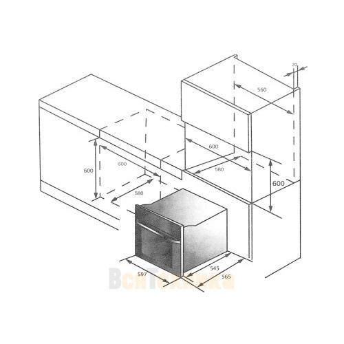 | Размеры ниши для встраивания, ВхШхГ (см) | 60х56х56 |