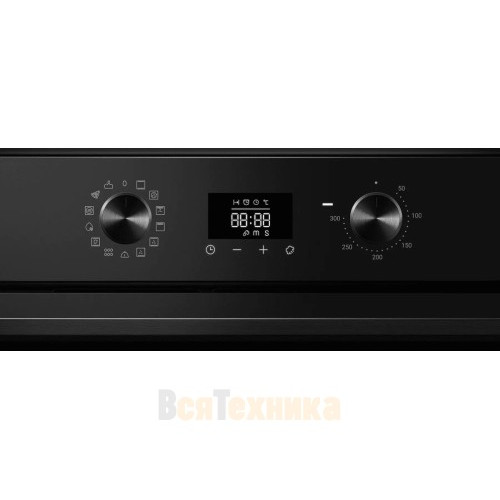 Максимальная температура нагрева духовки достигает 300 градусов. Для повышения удобства использования духовой шкаф оснащен выдвижными телескопическими направляющими, каталитической самоочисткой задней стенки, функцией аква очистки, а также плавным закрыванием, обеспечивая комфорт и безопасность.