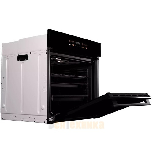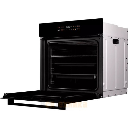 Особенности дизайна и внешней панели управления — также важный пункт при выборе духовки на кухню. В данной модели нужно обратить внимание на цвет — черный/тонированное черное стекло, охлаждение двери, чтобы поверхность и мебель вокруг не нагревались.